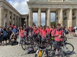 La colonie de vacances franco-allemande « Off Roads » a emmené un groupe de jeunes à la découverte de Berlin et de Saint-Malo. Après une première semaine passée à Berlin à explorer la capitale allemande et à développer une forte dynamique de groupe, les participant·es se sont rendu·es à Saint-Malo pour poursuivre l’aventure. Encadré·es par quatre animateur·rices interculturel·les, les jeunes ont participé à diverses activités choisies et planifiées par elles/eux-mêmes, telles que des excursions à vélo, des balades en pédalo et des après-midis de jeux. Ces activités ont favorisé la cohésion de groupe et l’apprentissage linguistique, chaque journée commençant par des animations linguistiques ludiques. La semaine à Saint-Malo a été riche en découvertes culturelles, avec des visites à Dinard et au Mont Saint-Michel. Les jeunes ont également pris part à la planification du programme, ce qui a renforcé leur esprit d’initiative et de décision. À l’issue de ces deux semaines d’échange, les participant·es ont quitté le groupe avec de nouvelles amitiés et des souvenirs marquants. Nous remercions chaleureusement les organisations CEI et CCAS, ainsi que l'OFAJ, pour leur soutien essentiel. *** Das deutsch-französische Ferienlager „Offroads“ führte eine Gruppe junger Menschen auf Entdeckungstour durch Berlin und Saint-Malo. Nach einer ersten Woche in Berlin, in der die deutsche Hauptstadt erkundet und eine starke Gruppendynamik entwickelt wurde, reisten die Teilnehmenden nach Saint-Malo, um das Abenteuer fortzusetzen. Begleitet von vier interkulturellen Betreuer*innen führten die Teilnehmenden verschiedene selbst gewählte und geplante Aktivitäten durch, wie z.B. Fahrradtouren, Tretbootfahrten und Spielenachmittage. Diese Aktivitäten förderten den Gruppenzusammenhalt und das Sprachenlernen, wobei jeder Tag mit spielerischen Sprachübungen begann. Die Woche in Saint-Malo war reich an kulturellen Entdeckungen, darunter Besuche in Dinard und am Mont Saint-Michel. Die Jugendlichen waren auch in die Programmplanung eingebunden, was ihren Sinn für Eigeninitiative und Entscheidungsfindung stärkte. Nach diesen zwei Wochen Austausch verließen die Teilnehmenden die Gruppe mit neuen Freundschaften und unvergesslichen Erinnerungen. Wir bedanken uns herzlich bei den französischen Organisationen CEI und CCAS sowie beim DFJW für ihre unverzichtbare Unterstützung.