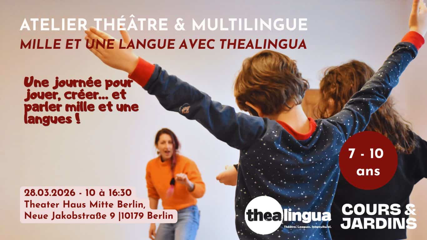 Dans cet atelier d’une journée, les enfants découvrent plusieurs langues… mais pas seulement avec des mots ! Grâce à la méthode Thealingua, aux jeux, aux histoires et au théâtre, ils explorent le monde coloré des langues, partagent leur propre langue, découvrent celles des autres et apprennent à se comprendre autrement avec curiosité, créativité et confiance.